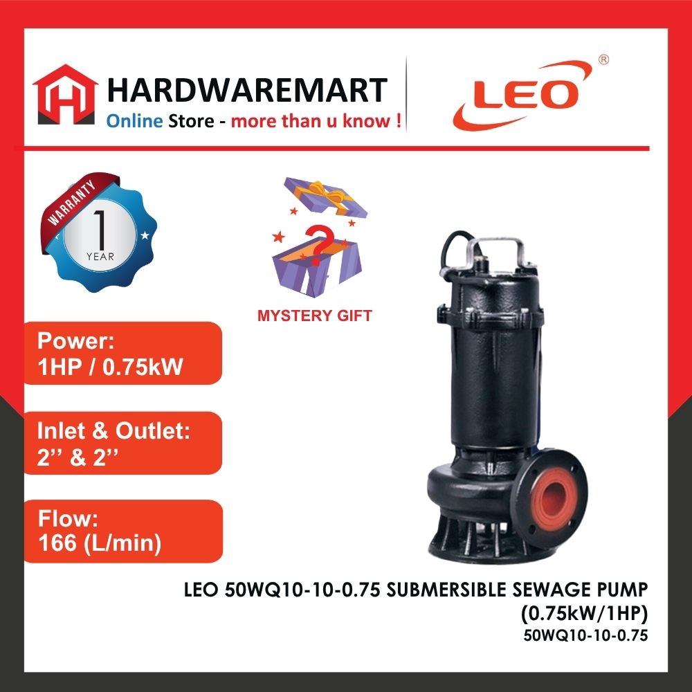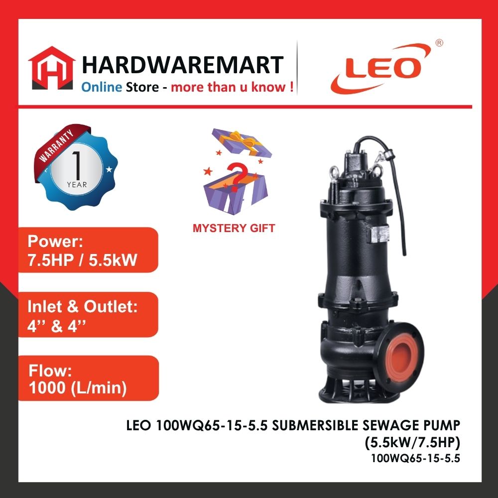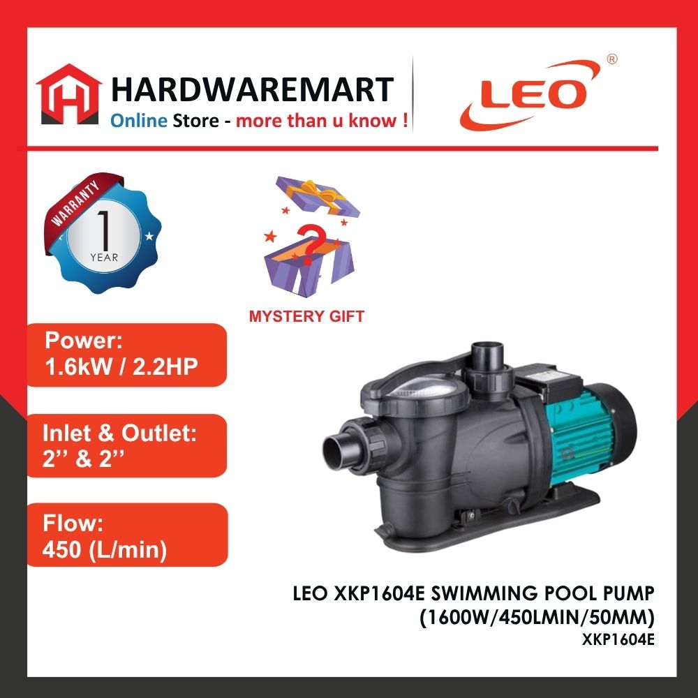 Brand: LEO Pump Power : 2.2HP / 1600W Voltage : 220V (50Hz) Inlet – Outlet : 50mm Max Flow : 450L/min Max Head : 17m Max Suction : 3.5m Max.liquid temperature : +35℃ Size (length*width*height): 615mm x 230mm ...