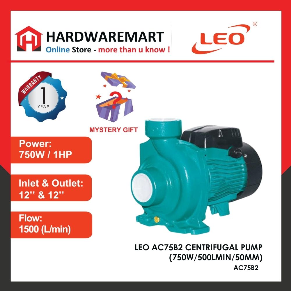 Brand:Â LEO Pump Power Consumption 1HP / 750W Power Supply 180V - 220V (50Hz) Structure Single Stage Pump Inlet - Outlet 1" (25mm) Max Flow 100L/min Max Head 36m Max Pressure 100m Max Suction 8m Rotation Speed ...