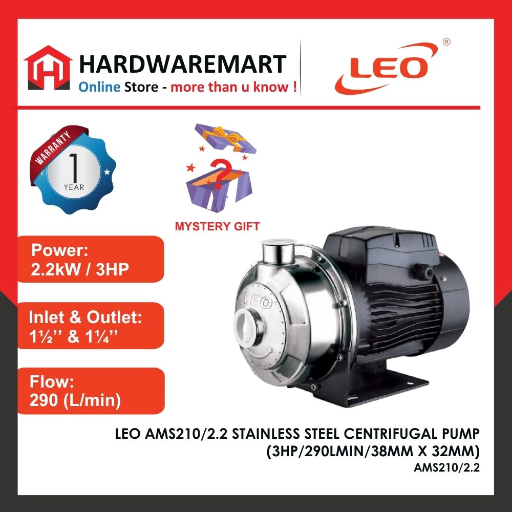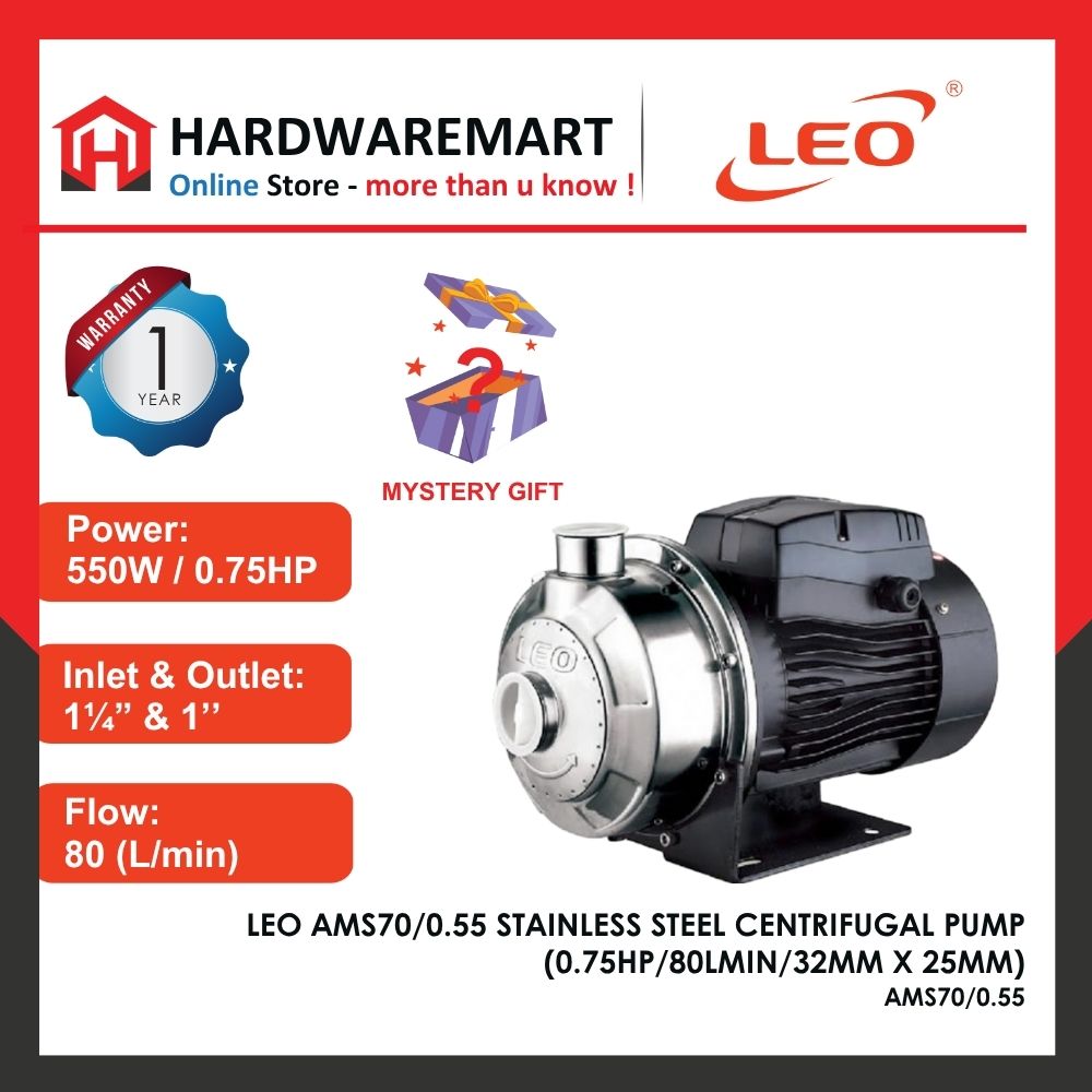 FREE: MYSTERY GIFT LEO AMS70/0.55 Stainless Steel Centrifugal Pump (0.75HP/80Lmin/32mm x 25mm) Application:It is applicable to household water supply, equipment support, pipeline pressurization, garden watering, vegetable greenhouse watering, fish farming and poultry raising, ...