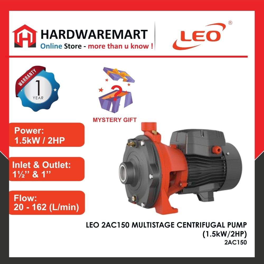 LEO EMHM4-5E Multistage Centrifugal Pump (with Press Control) Brand : LEO Model : EMHM4-5E Power Consumption : 1.0HP / 750W Voltage : 220V (50Hz) Inlet – Outlet : 1-1/4 x 1″ (32mm x 25mm) Max Flow ...