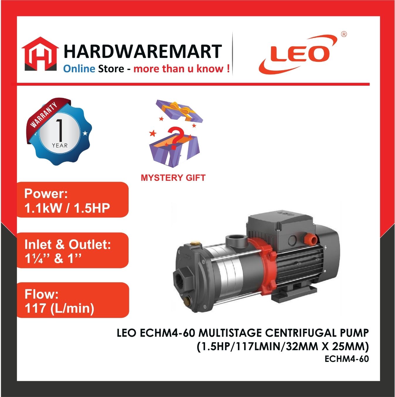 Brand: LEO PumpPower : 1.5HP / 1100WInlet – Outlet : 1-1/4 x 1″ (32mm x 25mm)Max Flow : 117L/minMax Head : 46mMax Suction : 8mStainless Steel ImpellerMotor With 100% Cooper WindingSize (length*width*height): 455mm x 185mm x 240mm