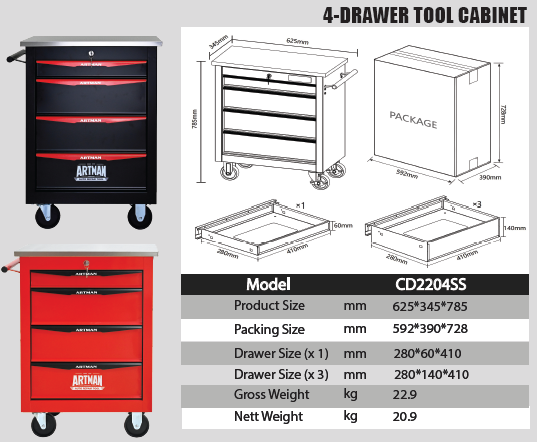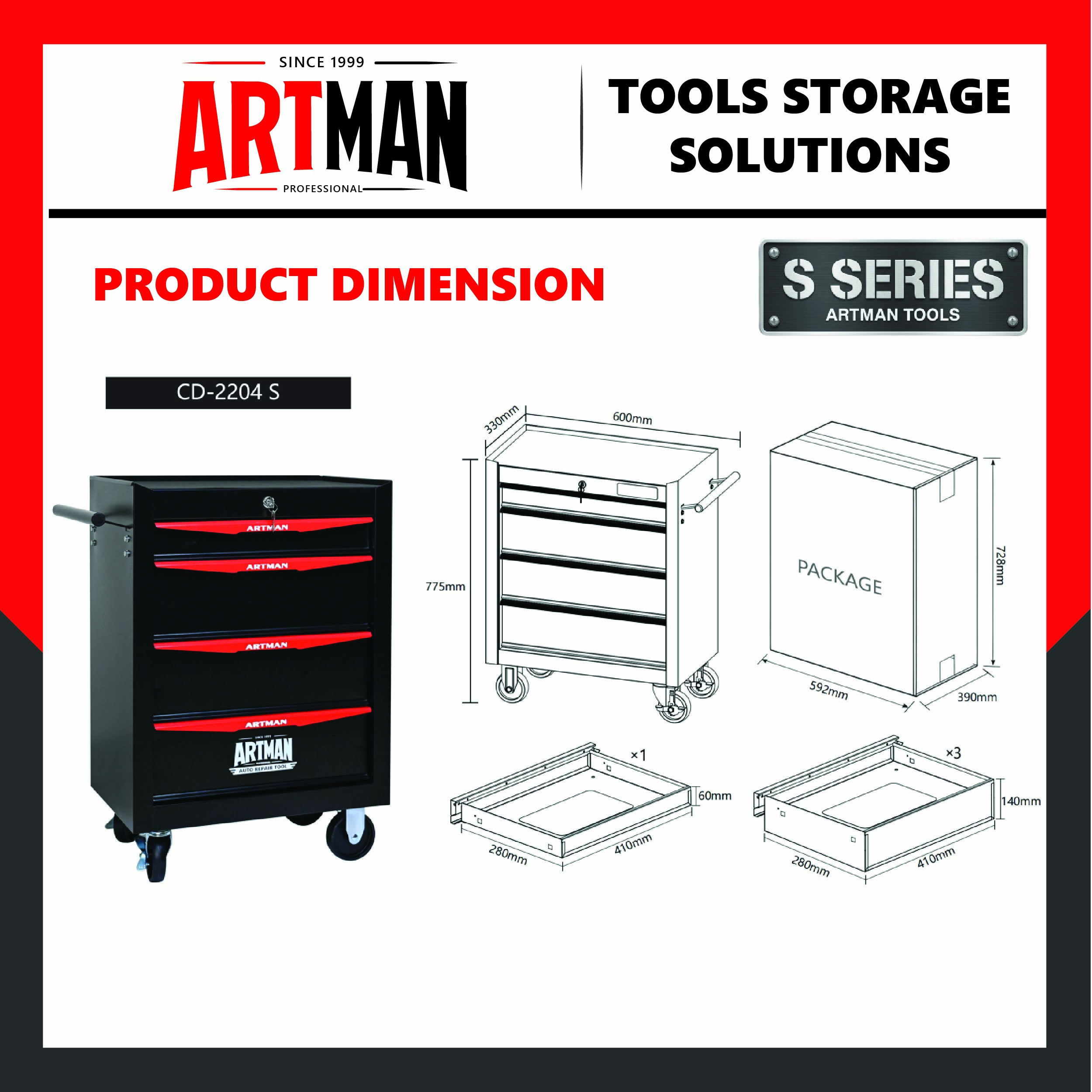 ARTMAN S SERIES 4 DRAWER MOBILE TOOL CABINET CD2204S