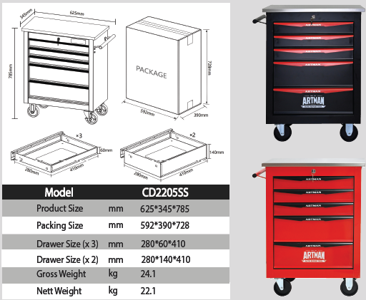 ARTMAN S SERIES 5 DRAWER MOBILE TOOL CABINET CD2205S