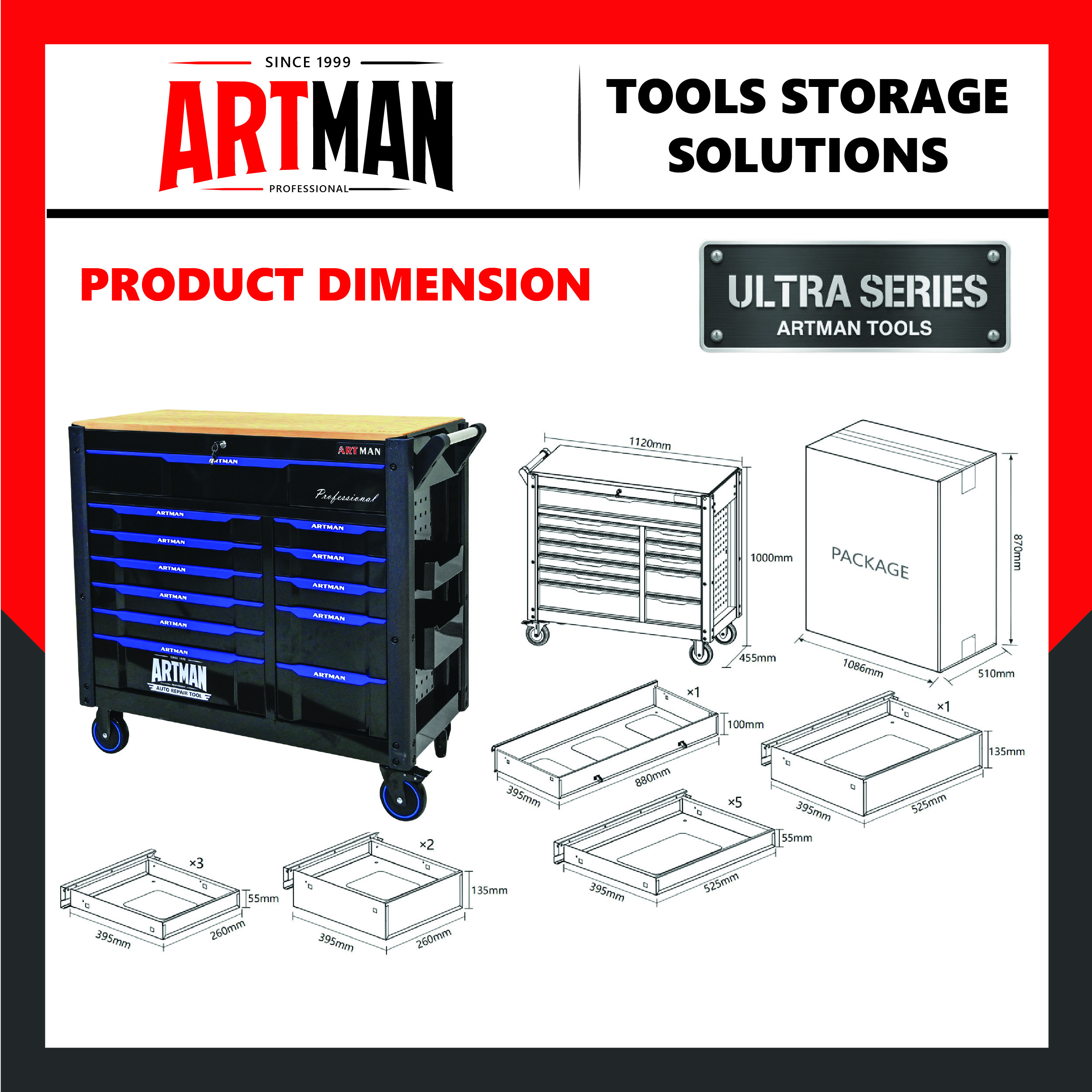 ARTMAN ULTRA SERIES 12 DRAWER TOOL CABINET WITH WOODEN TOP CD4512W BLACK