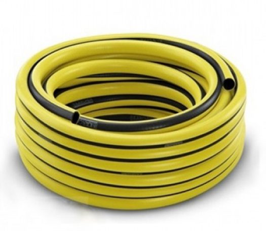 The PrimoFlex® quality hose, with a diameter of 1/2″ and a length of 20 m, is ideal for watering small to large areas and gardens. The three-layer garden hose with pressure-resistant, woven reinforcement is free from phthalate, cadmium, barium and lead, meaning that it does not pose any risk to health. The weather-resistant anti-UV outer layer protects the material and the opaque middle layer prevents algae formation in the hose. The bursting pressure is 24 bar. Another outstanding feature of the water hose is its high temperature resistance, from -20 to 65°C. We offer a 12-year guarantee on this flexible garden hose. Kärcher watering line garden hoses are extremely flexible, robust and resistant to kinks. The advantages are clear: a long lifetime and easy handling. Watering with Kärcher is intelligent watering.