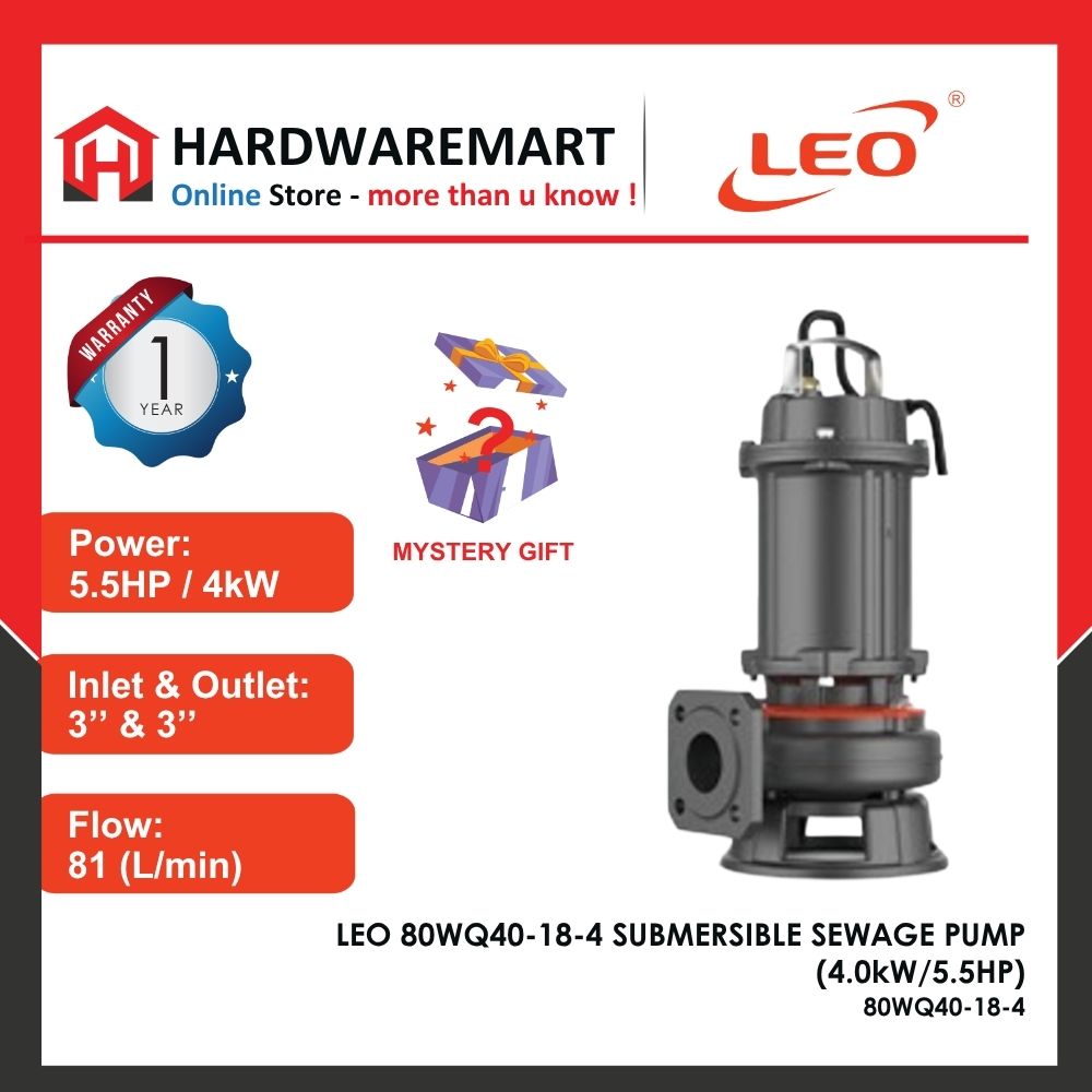 LEO 80WQ40-18-4 SUBMERSIBLE SEWAGE PUMP Pam Air Kumbahan [3 PHASE] (4.0kW/5.5HP)