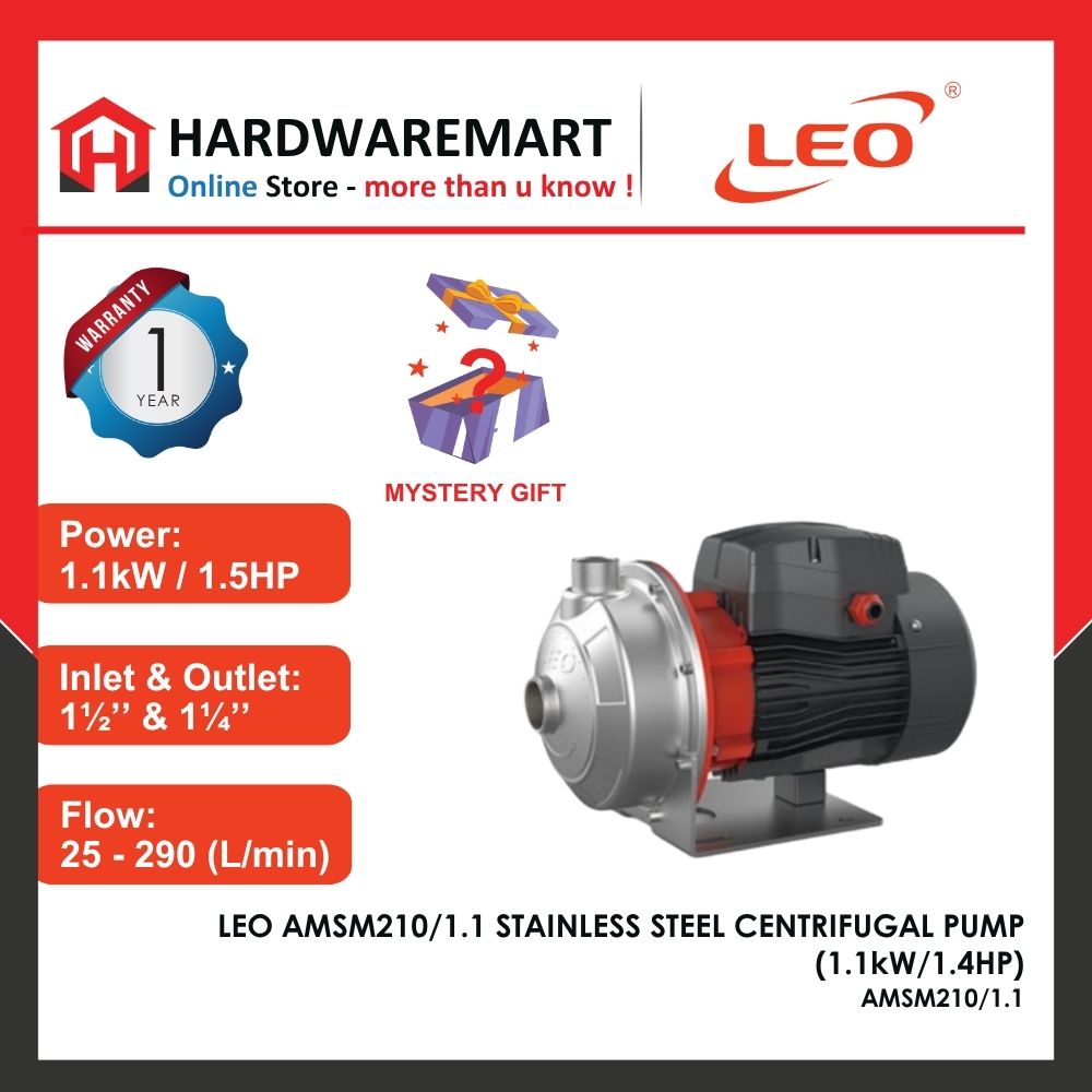 LEO AMSM210/1.1 STAINLESS STEEL CENTRIFUGAL PUMP Pam Air Rumah Kolam [1 PHASE] (1.1kW/1.4HP)