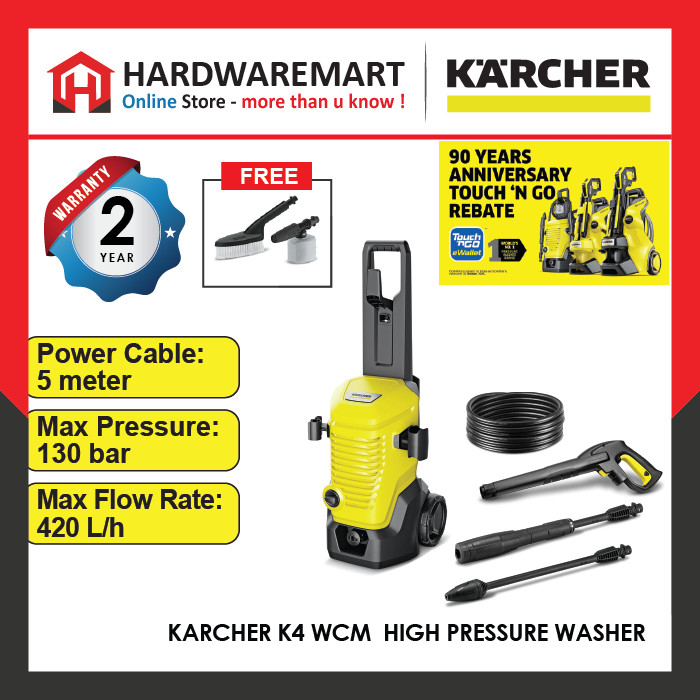 The K 4 WCM impresses with a powerful water-cooled motor, which is characterized by a long lifetime. The pressure washer with 6-metre-long high-pressure hose was built for occasional use and moderate dirt. Thanks to the Vario ...