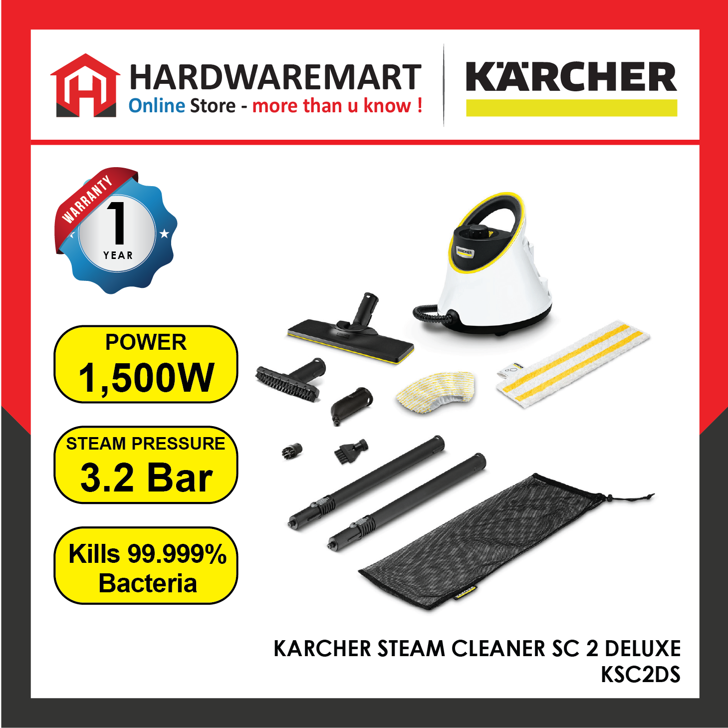 DESCRIPTION The new compact and lightweight SC 2 Deluxe entry-level steam cleaner provides two-step steam regulation for adapting the steam intensity to the surface and level of dirt. Thorough cleaning with the Kärcher steam cleaner removes ...