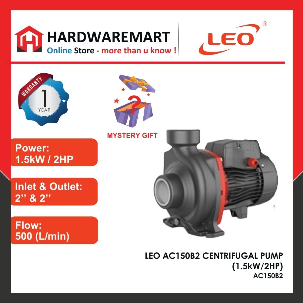 Brand: LEO Pump LEO THREE PHASE AC150B3 HIGH FLOW CENTRIFUGAL PUMP (1.5kW/2HP) Power: 1.5kW / 2HP Flow: 75-1000 L/min Head: 15m-5.5m Max suction: 8m Outlet: 3” x 3”